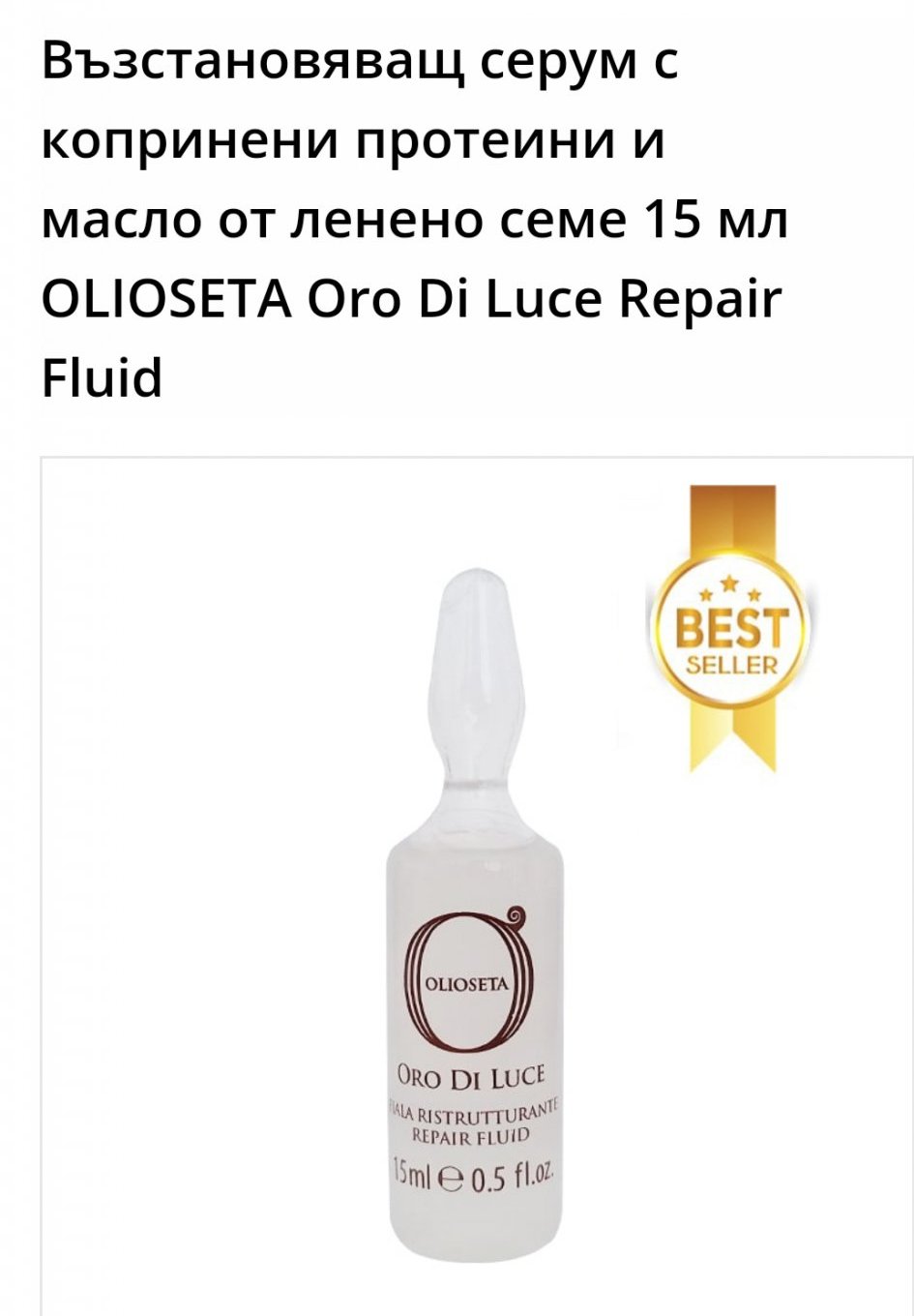 Само ампулите на Олиосета съм ползвала.По указание се ползват на измита и подсушена коса.Придавали блясък,хидратирали,подобрявали еластичността...аз такива ефекти не видях.След тях косата ми ставаше на слама,матирана и без никаква еластичност,като каска стоеше.За да ги изхабя,ги нанасях като серум преди маска и отмивах или ги смесвах с маската.