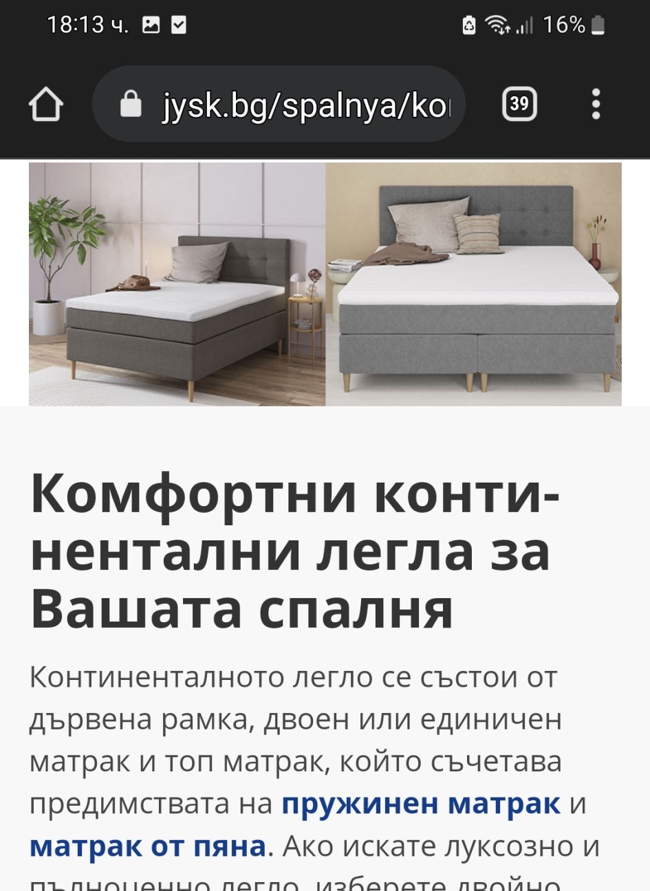 Значи търся континентално легло - тапицирана основа и върху нея си има нормален матрак. Има и тапицирана табла.
