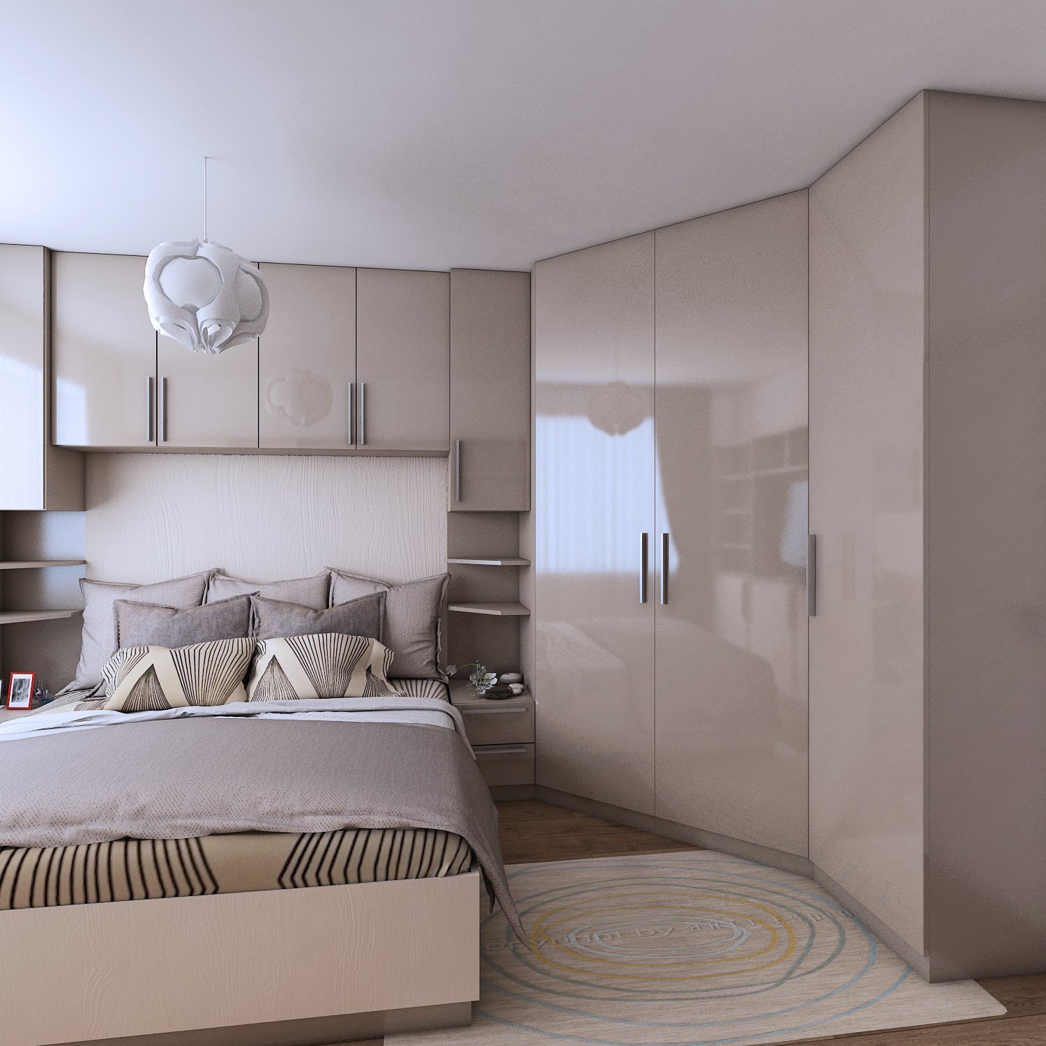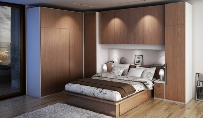 Аз пък съм фен на спалните с надстройка, и в двете ни жилища са такива и побират страшно много. Обаче не е  удачно, ако гардеробите/шкафовете са близо до ръба на леглото, да са повече от 50 см дълбоки, защото хем затрудняват  ставането от леглото (то затова и нощните шкафчета обикновено са с дълбочина най-много 50 см), хем ограничават погледа, когато си легнал - виждаш само страницата на гардероба.