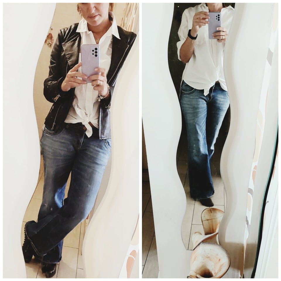 Както вече съм казвала, Mom jeans въобще не са вталяващи и обиращи, за мен поне седят добре само на слаби жени.