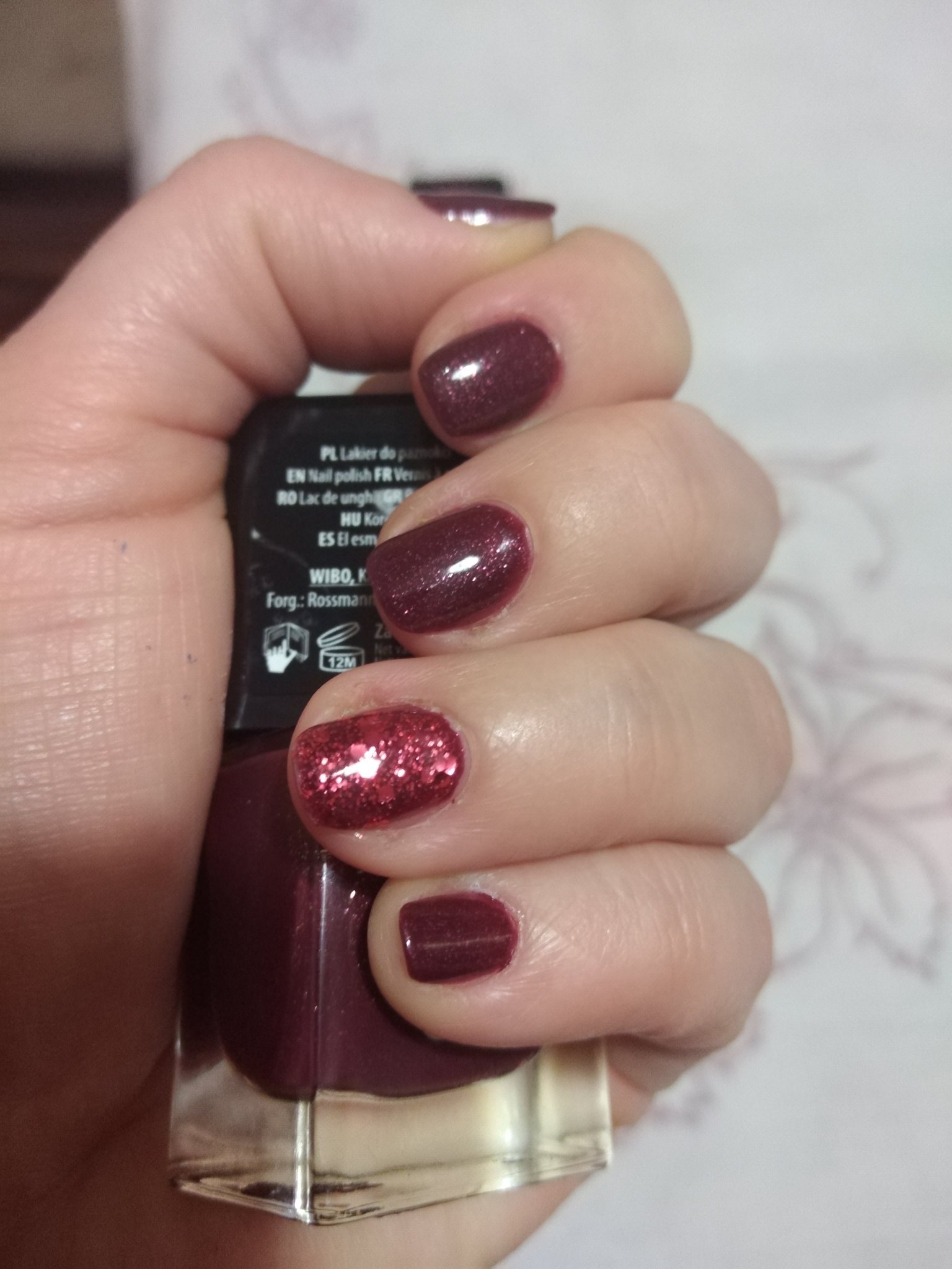 Толкова ми хареса Флормар red velvet, че пак съм с него, в комбинация с 323 cherry dessert. Simple Smile Red velvet е по-малинов в действителност, но камерата не го хваща.