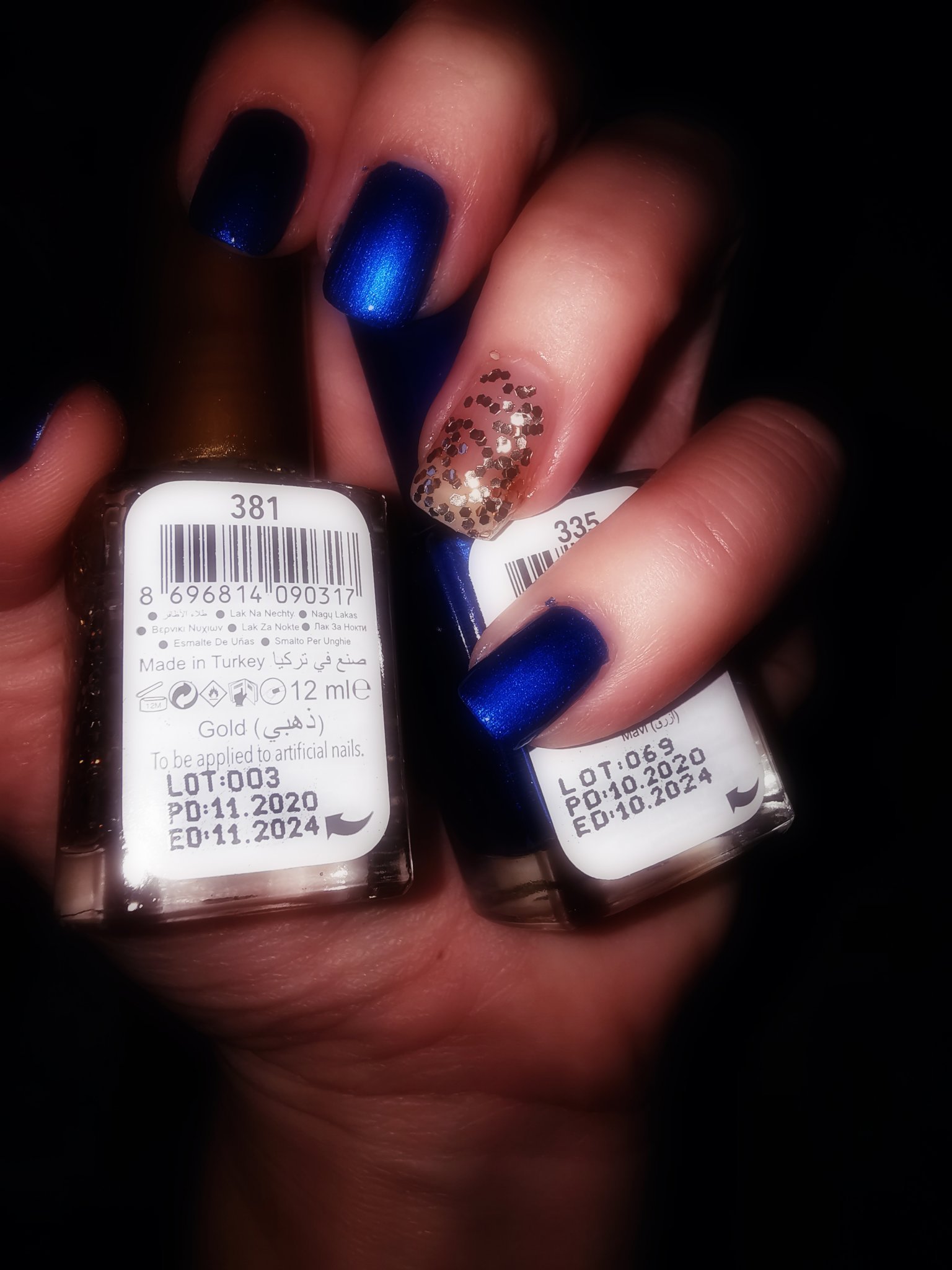 Tuty, кой е златистият глитър? Стана ми интересно, че отзад на шишенцето пише да се нанася на изкуствени нокти...😁 Синьото също много ми харесва.