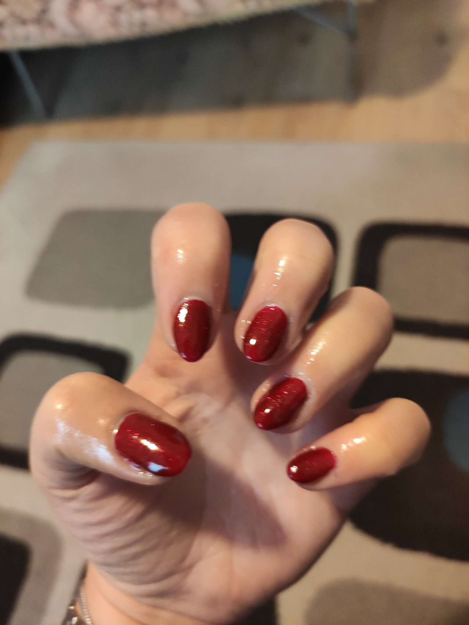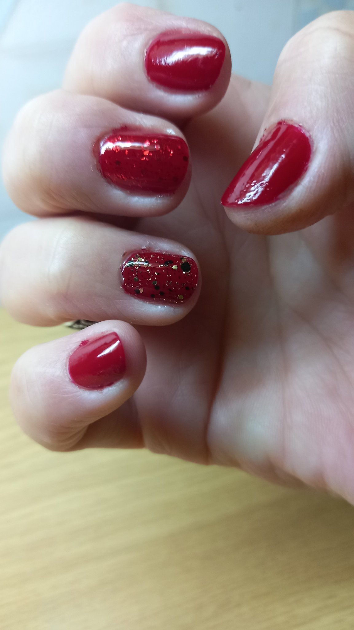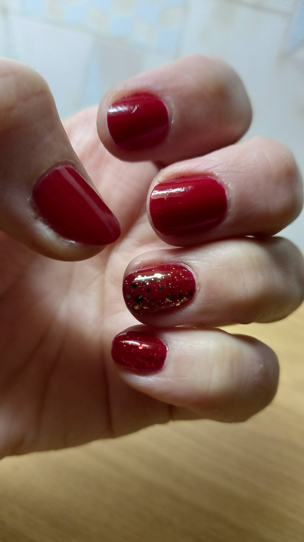 Момичета, всички сте много хубави, браво. Аз имам някакви драми с гела, та няма да ви занимавам сега с него, но вчера доста оправях нещата и набързо мацнах един Искрен - много ми се носеше червен лак и реших точно на нещо бляскаво да сложа. Да ви кажа, Искрен май е най-любимия ми цвят лак, но ми е много течен и някак винаги ми се разтича. Имам и други лакове на СНБ, но нямам такива впечатления за тях.