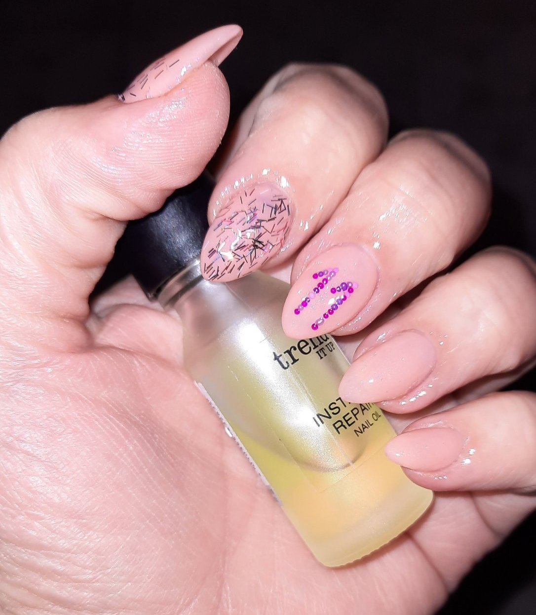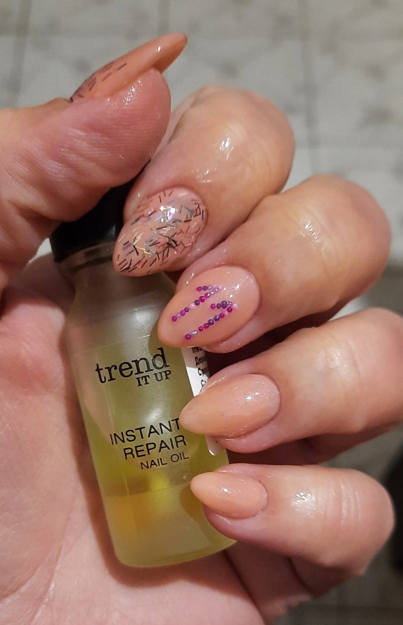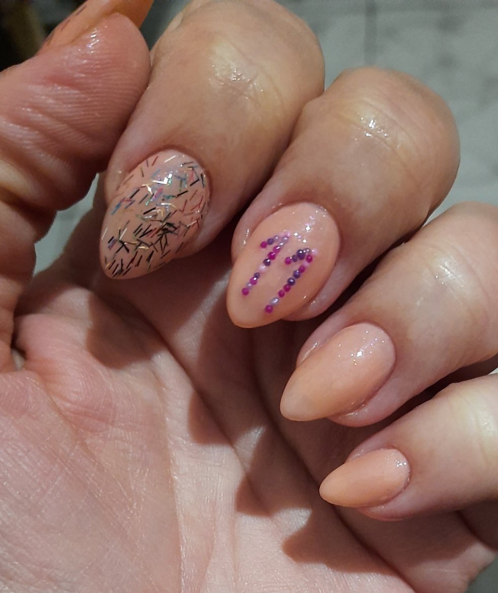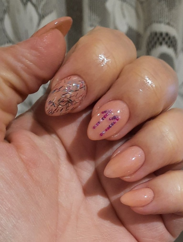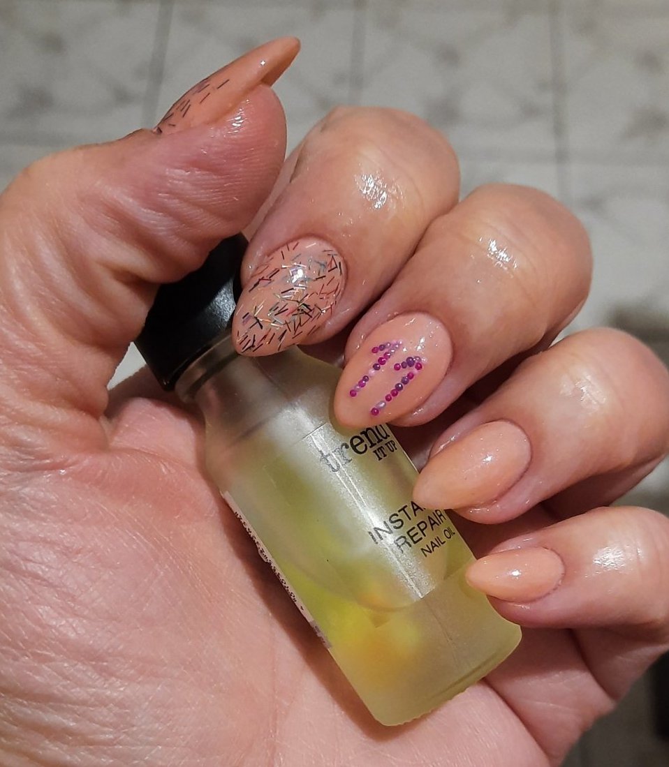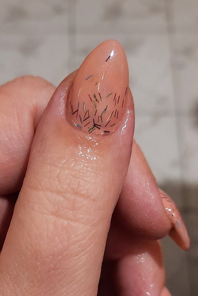 Че и се навих не само да добавям гел под лака, ами и на средния пръст махнах почти изцяло изграденото и запълвах (стори ми се, че има петно отдолу и като не бях сигурна, че е от предишен лак...реших че е някакво петно от мухъл или гъбички- нищо такoва, естествено, лак си беше)...😅