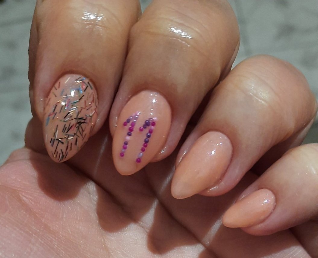 И аз съм с нощно творение 😄 Специално заради ММ сложих от любимите му прасковени нюанси, т. е. пак Лумс 28, но на 2 пласта този път. И малко намигване за 11-те години 🙂
