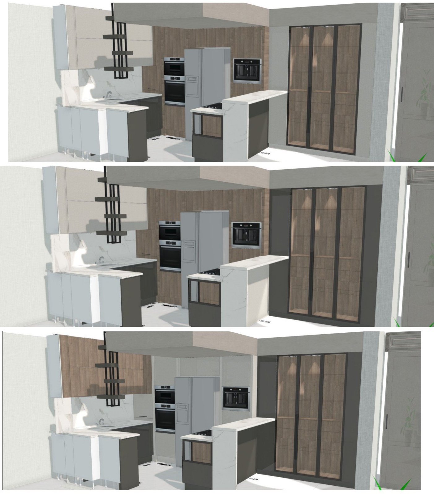 Няма ли да е трудно ползването на кафе-машината на 2рия вариант?! Има плот и хладилникът е напред.
