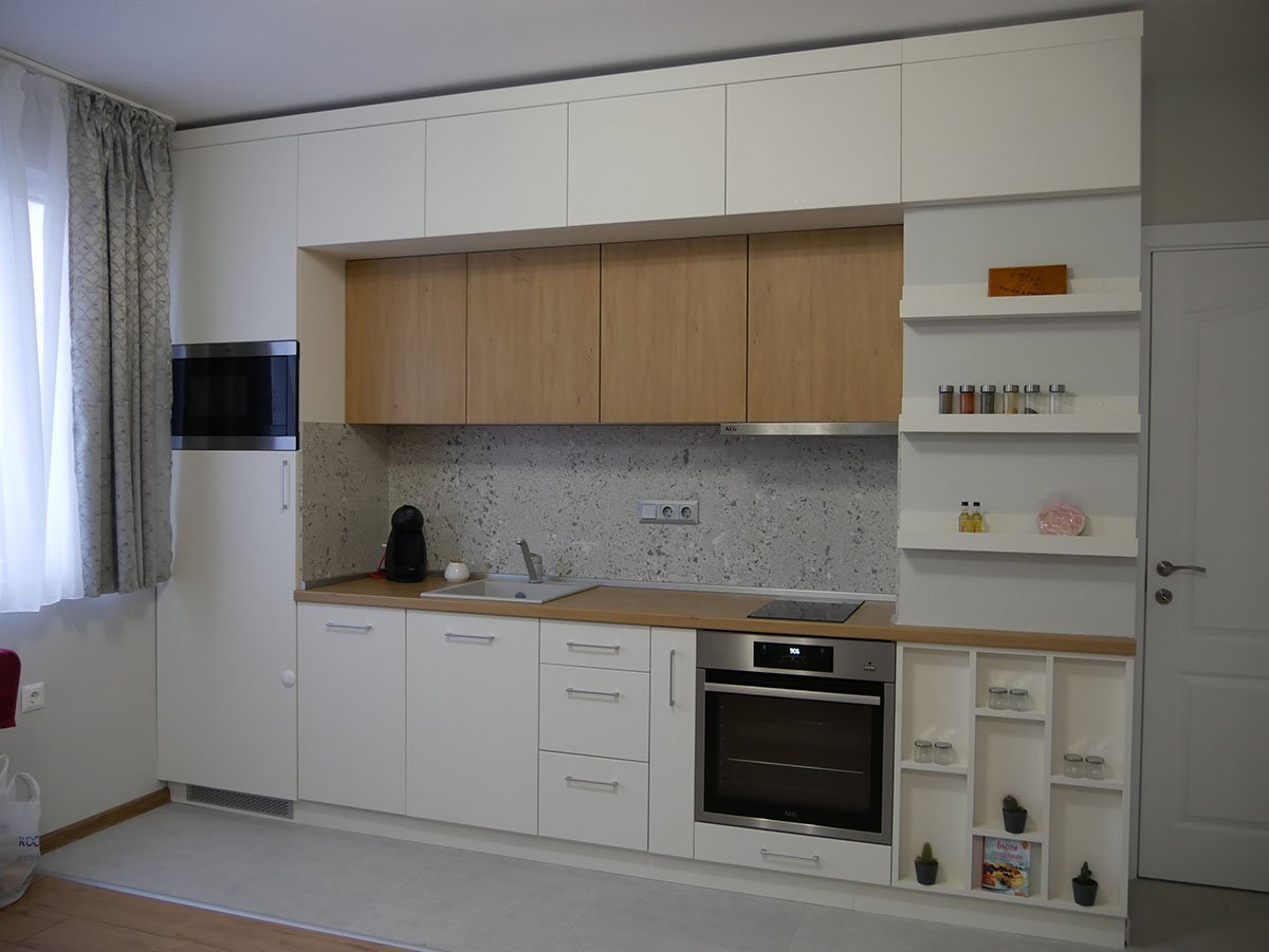 Как мога да свържа визуално два реда в кухня, ако един ред е по-плитък от другия?