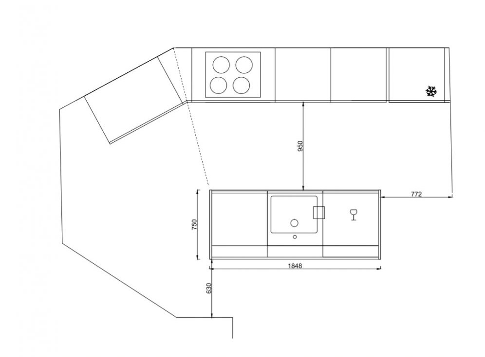 И аз. Ако това беше разположението на моята кухня бих скъсила прозореца с около педя и под него на тази стена бих направила долни шкафове /може би по-плитки/, както и да преместя острова вляво, да се изравини с тъпия ъгъл. От там едва ли ще се минава, а този трапец, които се образува остава неизползван. Така ще се освободи повече място вдясно за свободно преминаване.