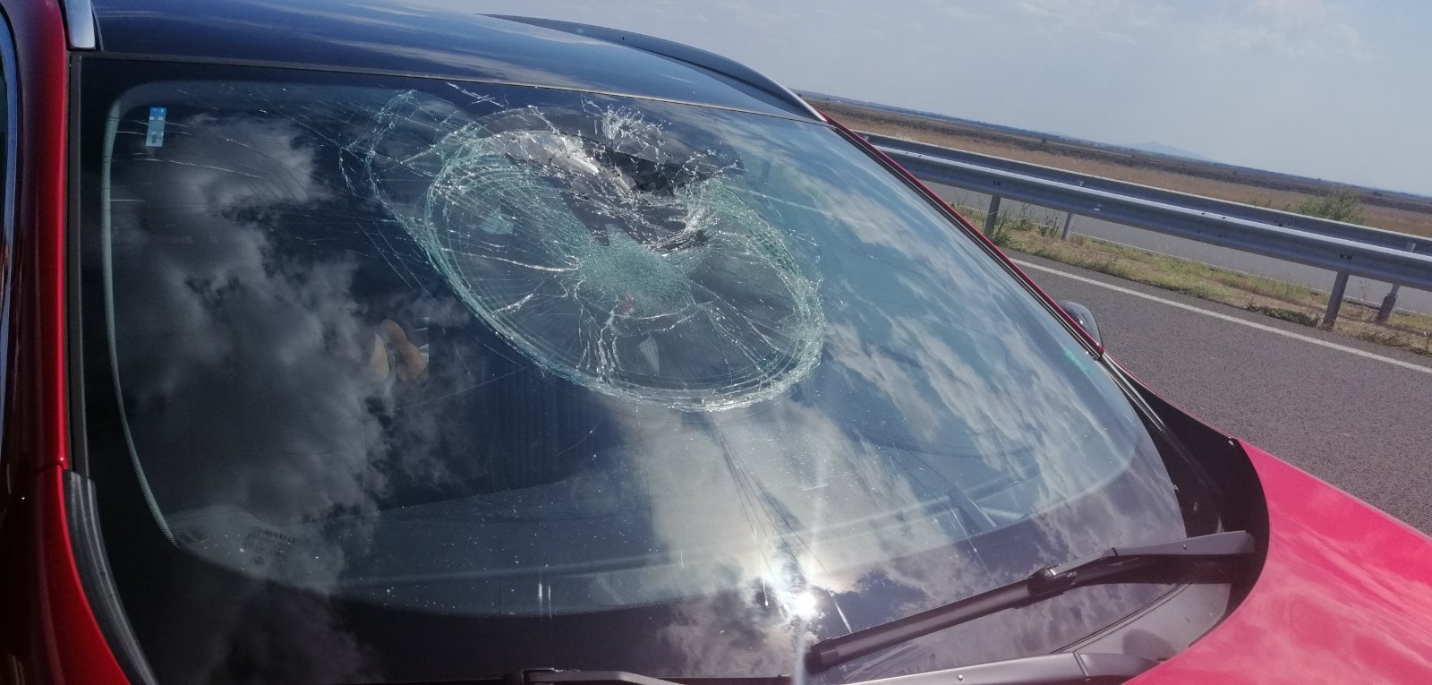 В началото на септември отскочихме до Велинград на почивка,която не се размина без премеждия.Пътувайки натам по АМ Тракия,виждам едра,гралива птица,която отвисоко сякаш си ни набройка и докато си помисля,че може да ни удари,се заби в предното стъкло на колата.Така жестоко го счупи,че започнаха да падат частици в купето.