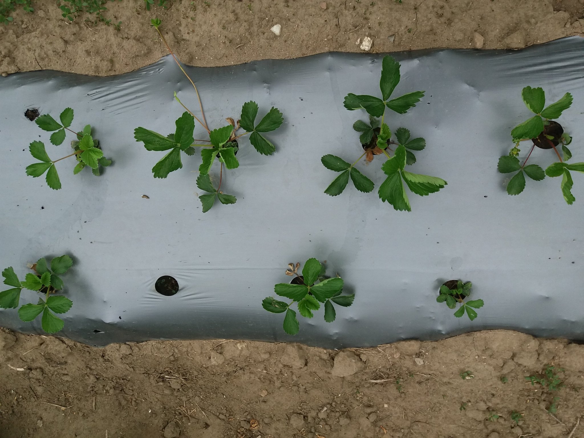 На всички ягоди съм решила да сложа найлон. То се побърквам от дупене и скубене.. Само чакам да им позаякнат малко корените, пускам маркучи да има за капковото и ги застилам... Малко ще е играчка да пробия дупките, ама 3-4 реда имах завити, не съм ги пипнала да плевя, задържат и добре влагата и не се калят плодовете...