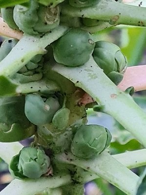 Брюкселчетата се появиха Hug Растението е много изядено, но се надявам студът да поспре гъсениците и да не почнат самите зелчета. Не разбирам откъде идват гъсеници, след като отдавна няма пеперуди. Зесега зелчетата са твърде малки да се ядат, но им се радвам защото за пръв път гледам такова и все пак даде плодчета. Това ще са ми последните зелевидни с които се захващам Triumph
