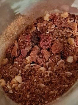 Имах един останал "гердан" от най-последната реколта недорасляци преди зимата, но като ги прехвърлих в кухнята и са се поовлажнили, чопърчето не ги мели и сега ги сложих на котлона да се поизсушат в тиганче. Смелих ги само наедро, бях забравила как се кашля от печени чушлета, обаче нещо ме човъркаше гърлото и от това веднага ми мина