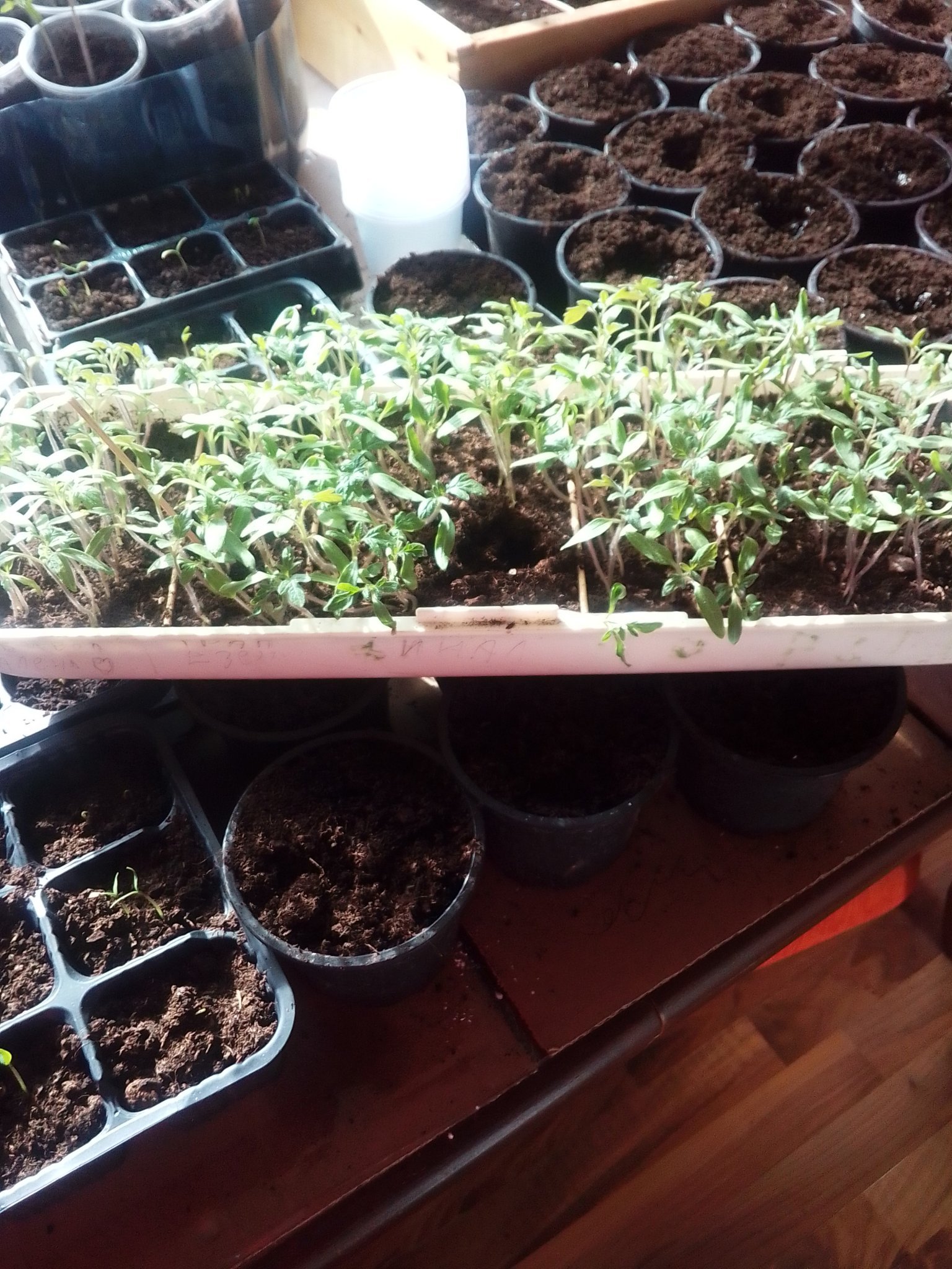 Тази година с опитите ми за подгряване попрецаках малко домати, но има достатъчно. Ръгбито поникна почти всичко, признавам го за железен хибрид. Почва да кръстосва вече, ще видя да пробвам и аз с по-ранно пресеждане другият уикенд евентуално, но няма да рискувам с всички коречета, че нямам доверие.