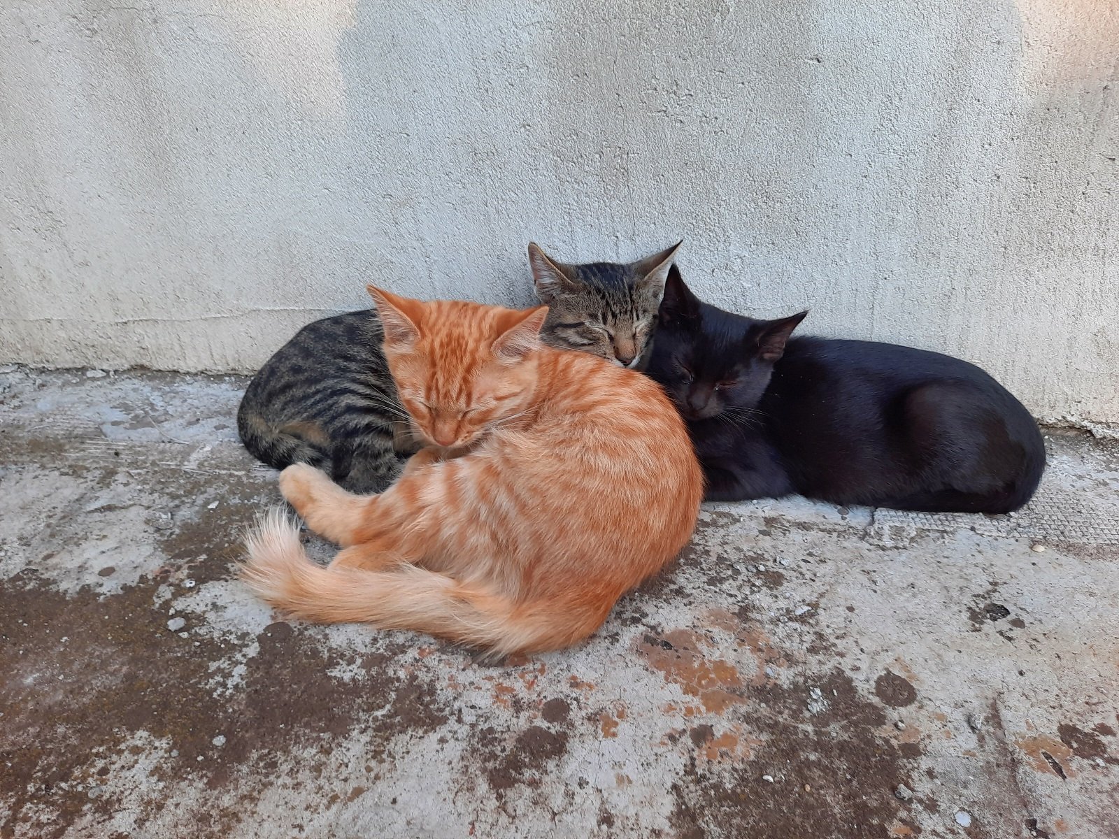 Тримата заспали: Блеки, Таби и Пухчо (тъкмо му се пукна една киста на бузката, горкия от умора заспа и другите и те да не видят нещо Grinning )