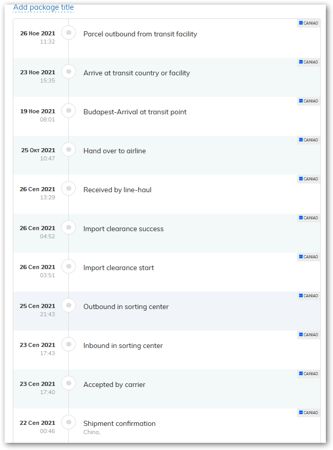 В самия сайт на Cianiao пише последната локация в която пакета е под техен контрол. Крайният превозвач или ластмайл доставчик няма ангажименти да скенира пакета в тяхната система - задължение има само при доставка с подпис.