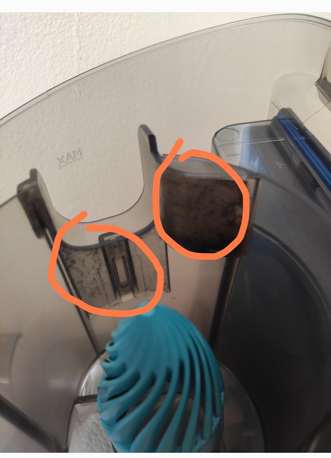 Измивам си контейнера, но има едни места, които не знам как да почистя и не разбирам как да сваля тази част, за да почистя и там. При вас как е и успявате ли да разглобите на това място: