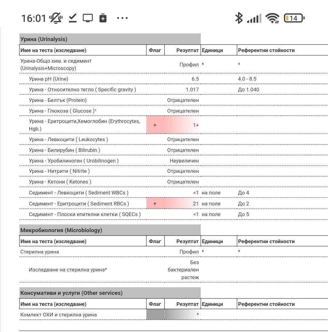 Днес пуснах стерилна урина и повторих ОХИ в Цибалаб. Надявах се да излезе нещо от стерилната урина, уви...няма бактериален растеж Sad Утре ще ходя до лабораторията на ВМА да пусна онова специфичното изследване и ще пусна пак ОХИ и стерилна урина.