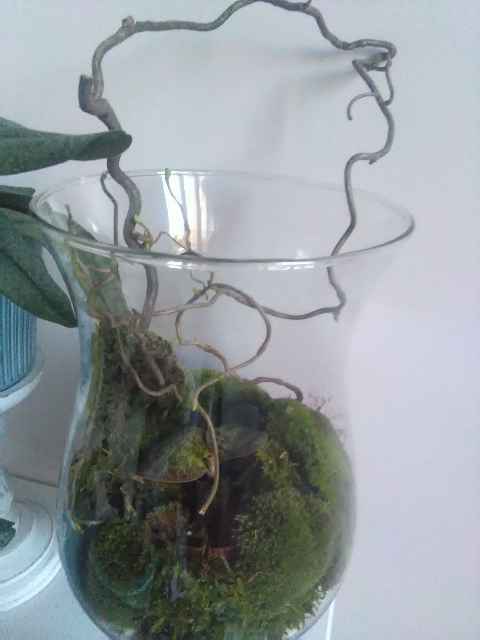 Може да ги пръскаш спокойно с вода (без да ги давиш). Мъхът иска влага за да стои зелен. Той от своя страна, ще поддържа влажността на въздуха и няма да ти се извиват листенцата по краищата. При мен, това беше причината. Всичко което порастна в терариума е с опънати листа.