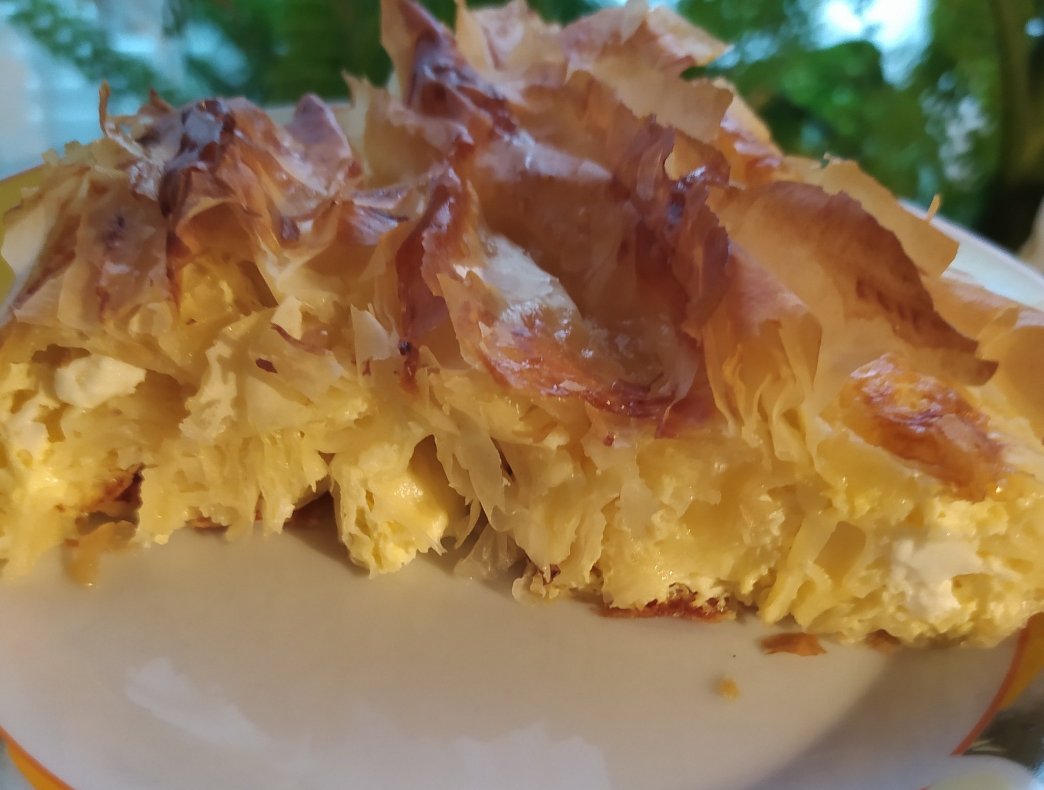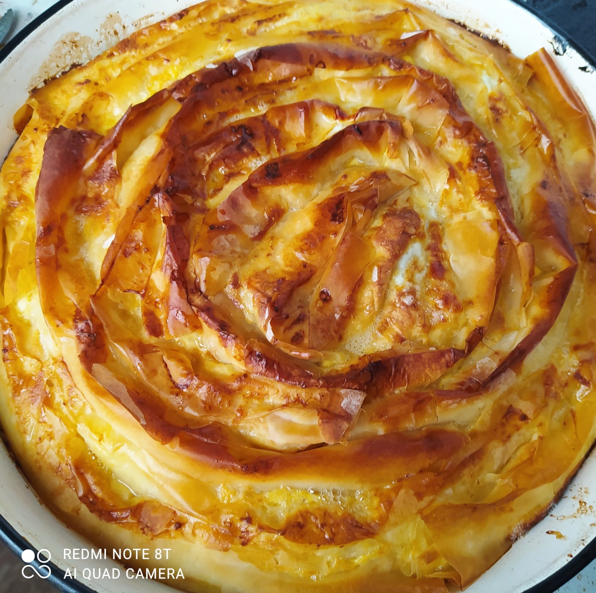Баница (добруджански бюрек, разбира се) за закуска. Врътнах я снощи и... почти не остана за закуска.