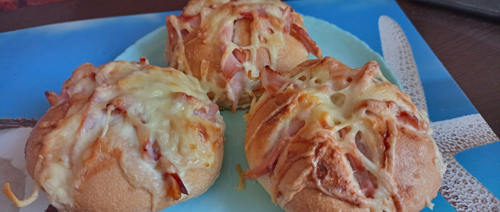 Земелки с яйце, кисело мляко, шунка и кашкавал