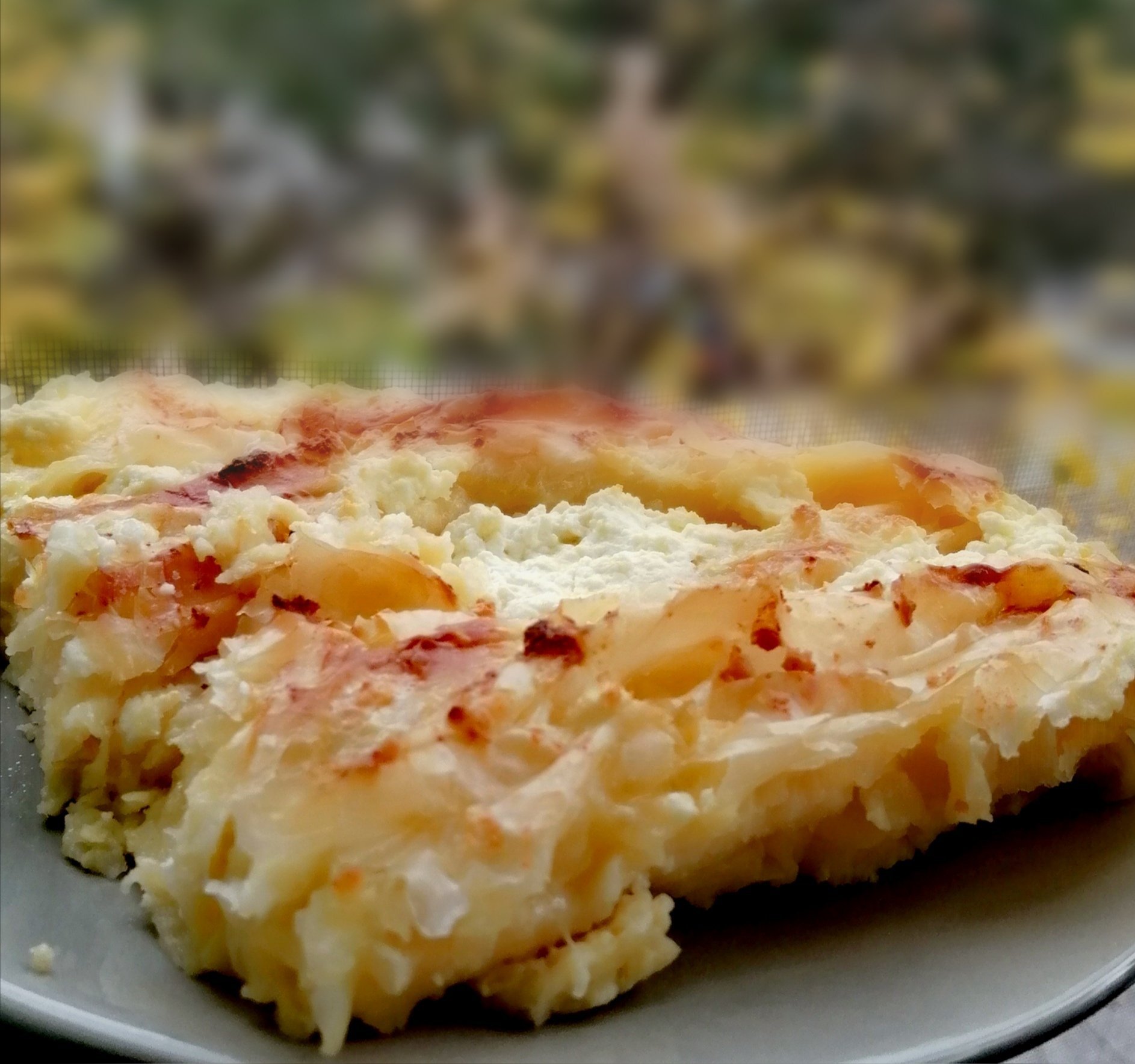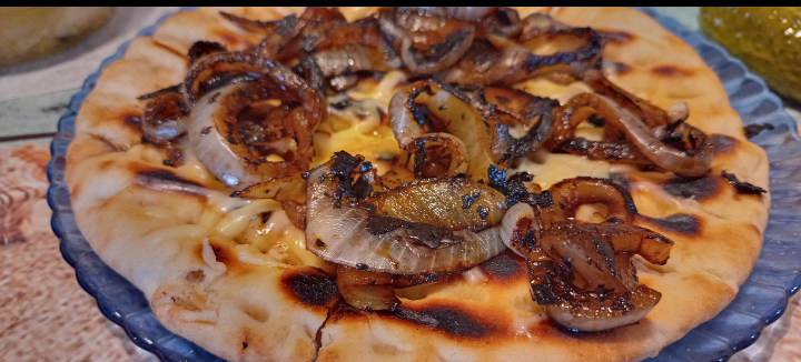 И не особено здравословно пържено с лук и чушки месо 😜 (отзад наднича сурова туршийка)