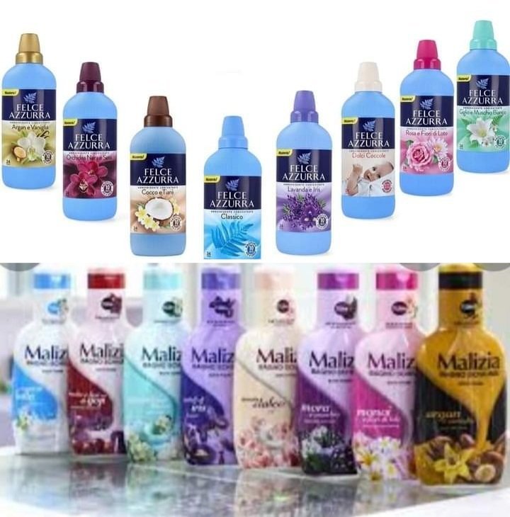 Felce azzurra след сушилня не остава силен аромат(при мен),а показаната Malizia е гел-душ,има и омекотители Malizia,но не са концентрати.