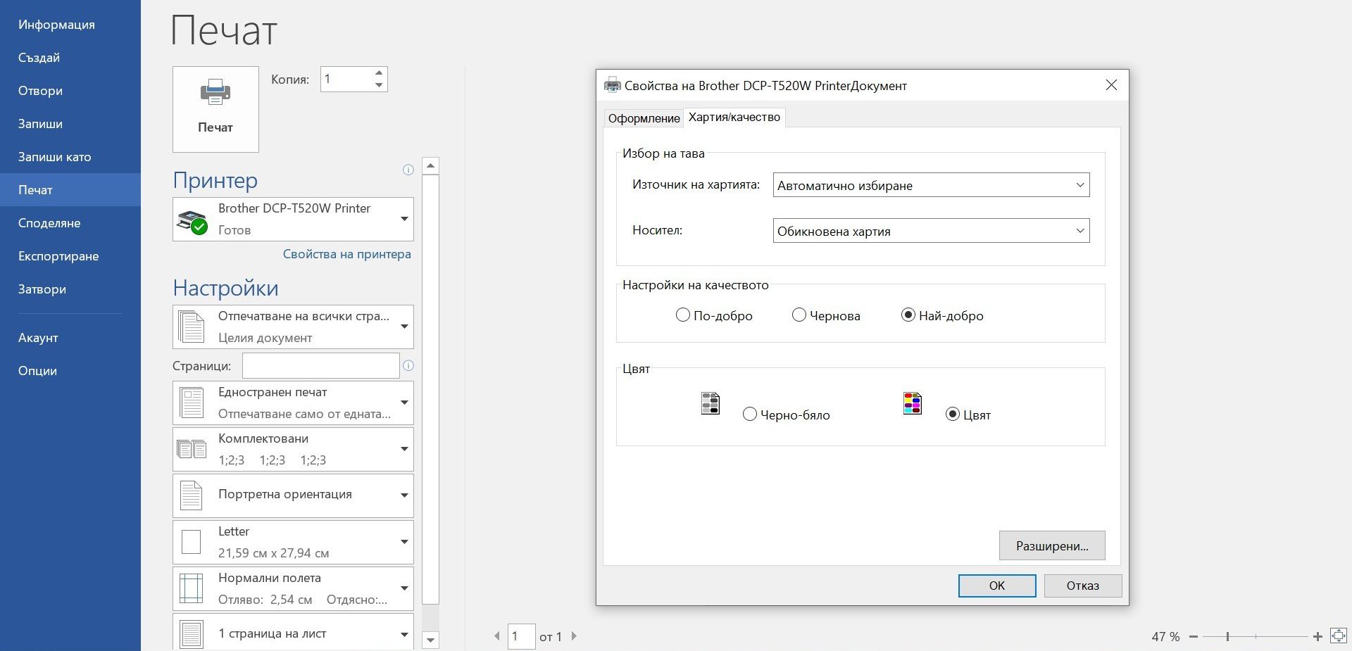Здравейте. Купих си Brother DCP T520w. Имам обаче проблем с настройването му. Свързах го чрез уайфай с домашната мрежа, но често я губи. Когато дам команда за принтиране, казва, че няма наличен принтер. Когато опитам през приложението, пак невинаги става. Отделно принтира доста бавно и самите букви са малко неясни. Не мога да разбера къде бъркам.