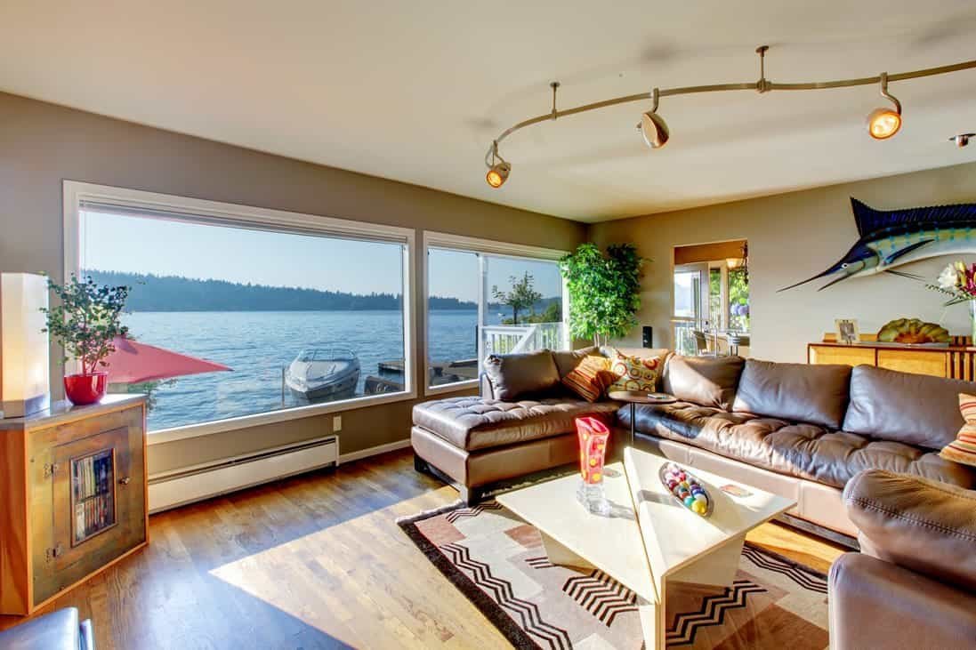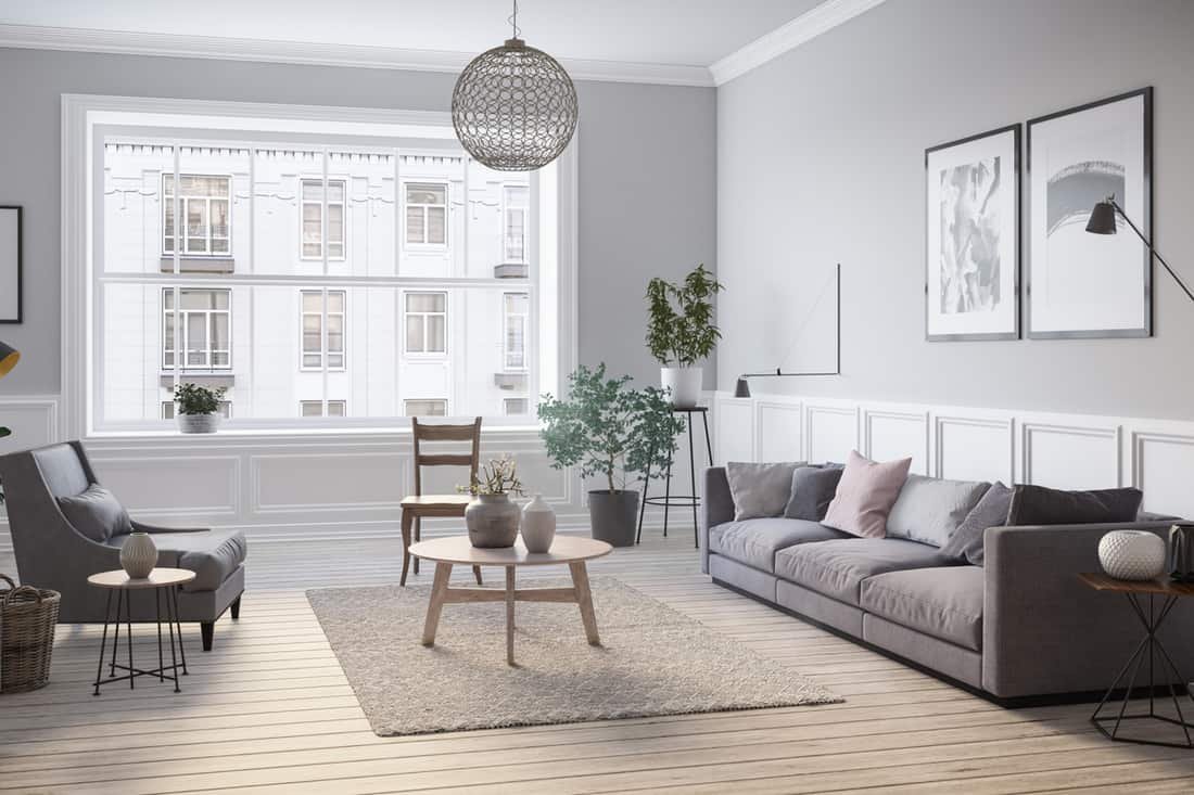 Над дивана може да сложите и декоративни рафтчета с растения, със или без картини до тях.