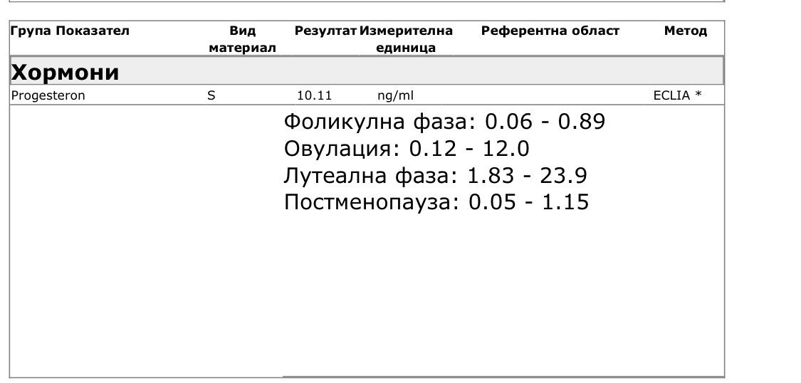 Излезна ми резултата . Прогестерон на 6-ти ден / след доказана овулация / .