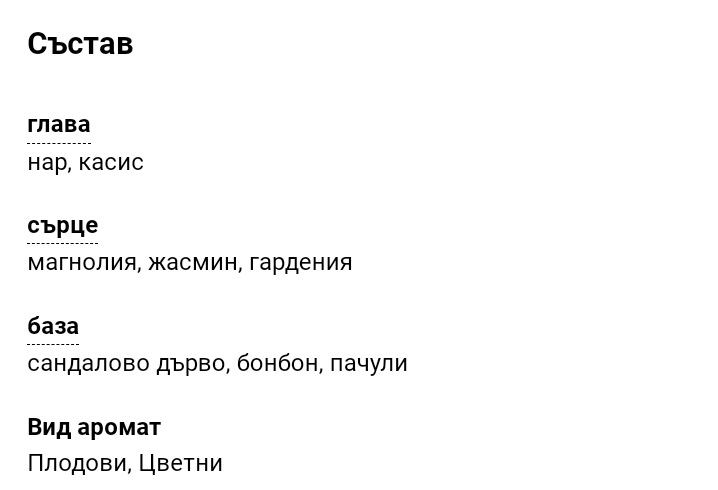 Има някакви специфични нотки,които харесвам.Виждам ги в парфюмните пирамиди,но още не мога добре да се ориентирам.