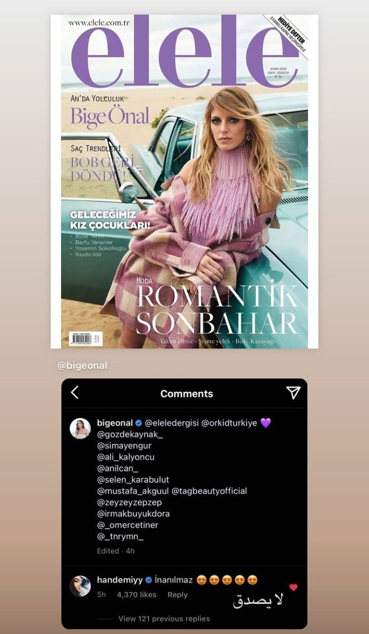 В Инстаграм Ханде следва всичките си колеги от сериала + MF YAPIM, които го създадоха. Не намирам за некоректно това, че се е отписала от профила на самия сериал. Така или иначе той вече свърши. Нищо ново или интересно няма да бъде публикувано. Може да не й харесва администратора на профила, може да не иска да й изскачат неща, които вече не се отнасят до нея. Така или иначе, важни са хората от проекта, а не идеята за него.