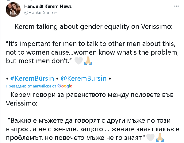 Красотата е не само вътре в тях, но и около тях... Когато вътрешно излъчваш красота и любов, всеки пейзаж в най-общ смисъл изглежда красив... Където и да застанат, както и да позират, все са красиви... Хубаво, че са били и са приятели, но понякога е трудно да останеш само приятел с някого... Наслагват се и други чувства, които пренасят връзката на друго ниво... Керем каза едно много важно за мен изречение... Че е започнал в един момент да се грижи повече за Ханде... Да се грижиш за някого и да ти пука за него... това е другото име на любовта..
