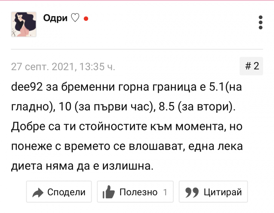 Имам два пъти измервания сутрин през тази бременност. Едната беше 3.8 пак, а другата 4.4.