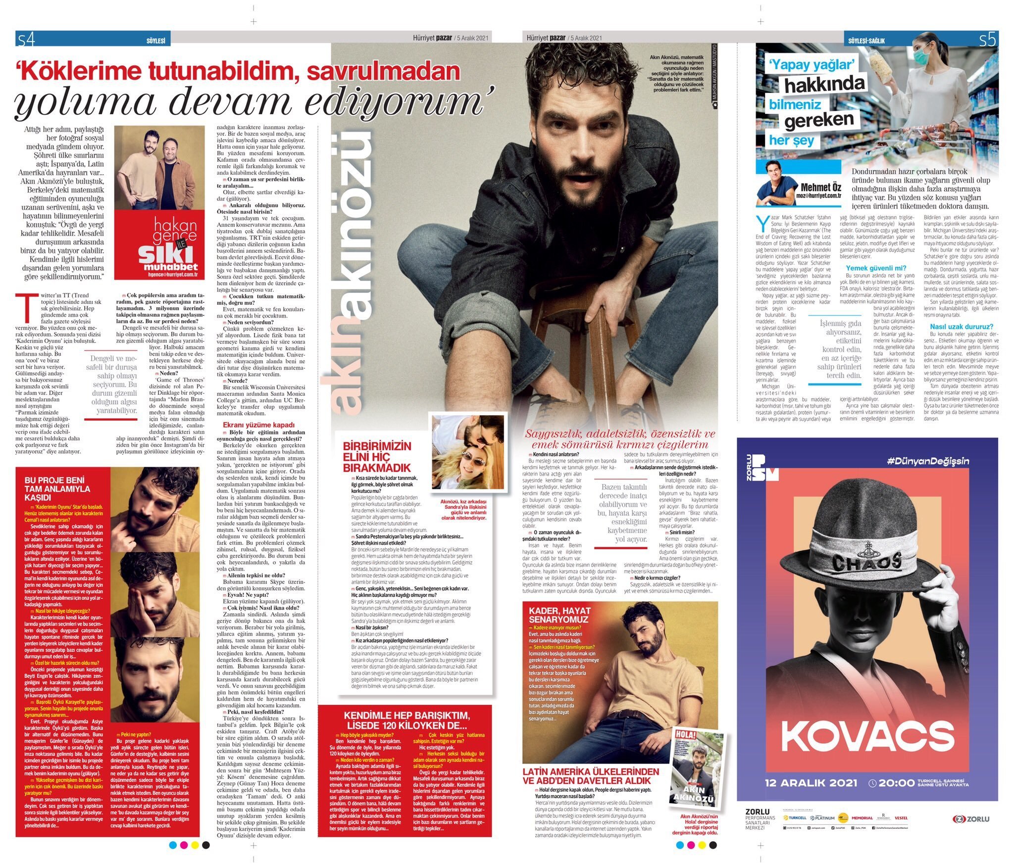 Водещата статия в Hürriyet Pazar днес е тази с и за Акън.