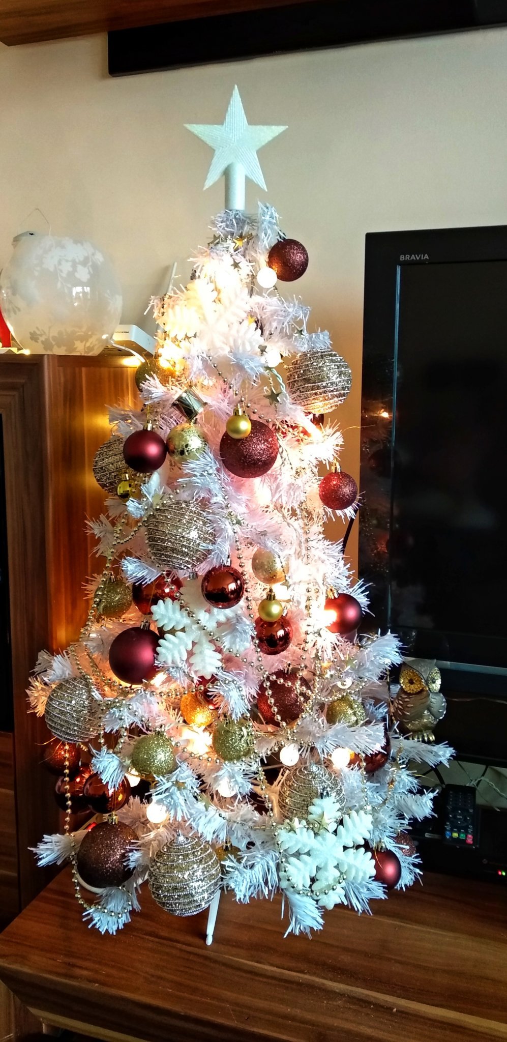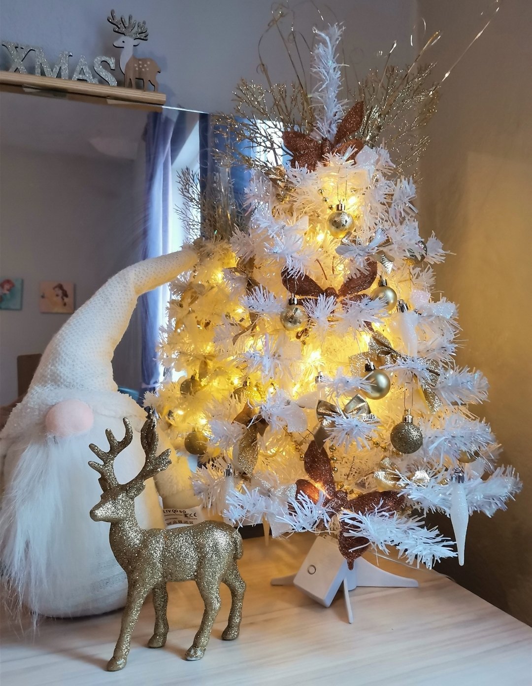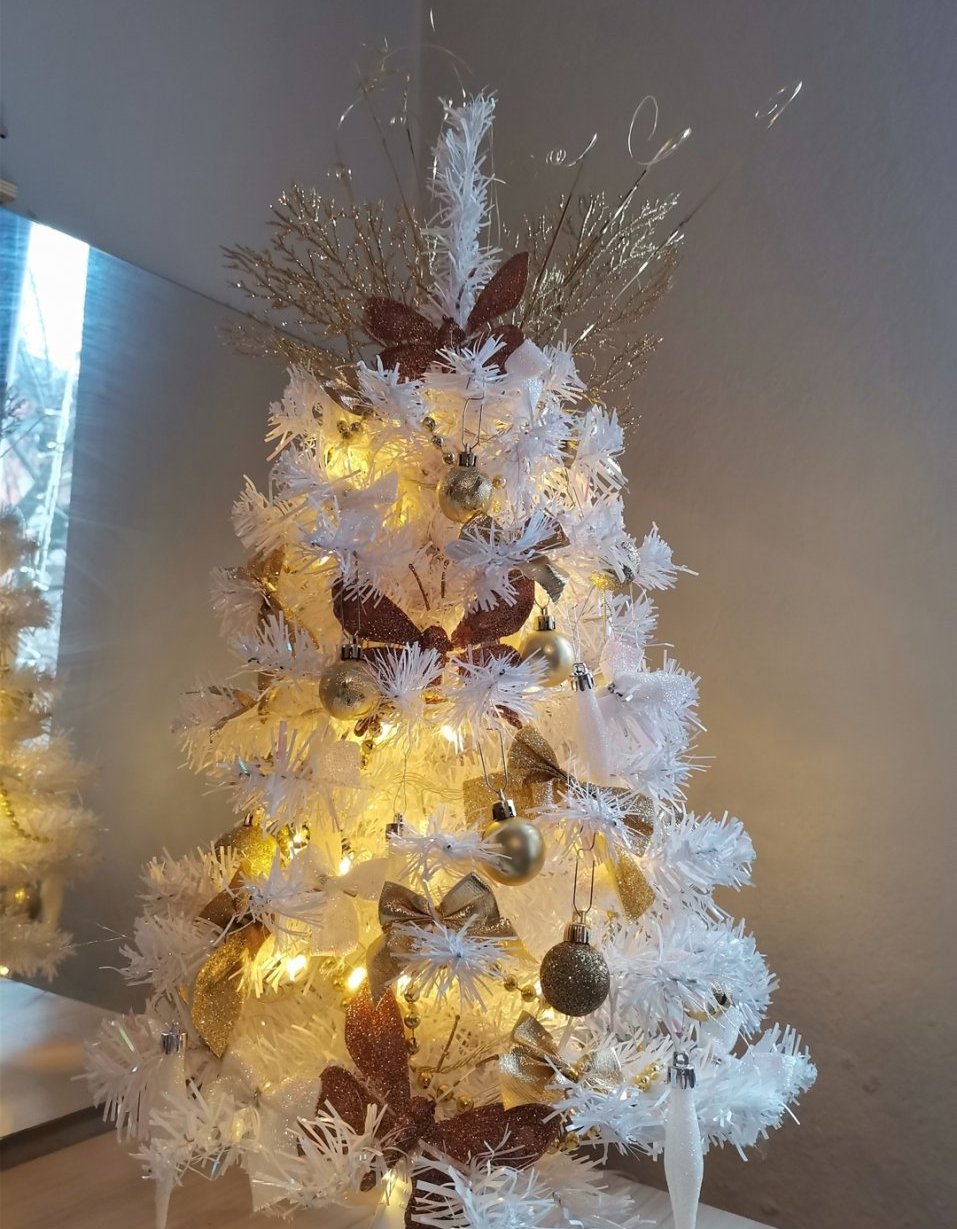 Украсих малката елха и тоалетката днес.