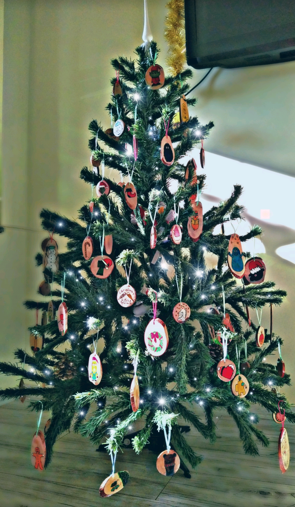 И ние с децата започнахме с украсата. За първа година сме с толкова висока елха, носи много коледно настроение. Blush