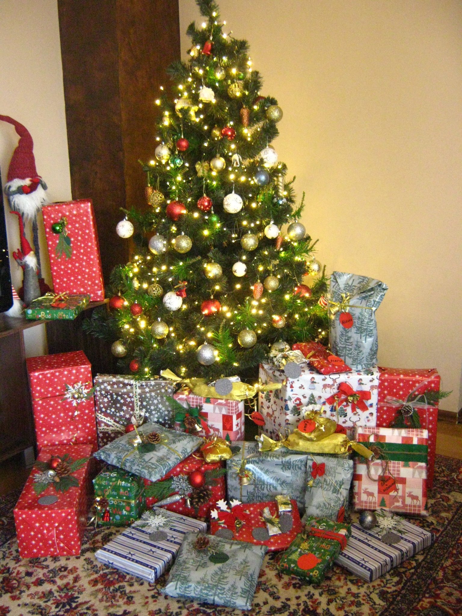 Ромео украсена, личи си че не е естествена, но поне е достатъчно гъста за да се украси било с по-малко украса, било с повече. Върха е слабото звено в тази елха и дори на предпоследната снимка се вижда как се е огънал от по-тежката звезда. Честно казано това много ме дразни и имам десетки снимки иначе хубави, но върха си има собствен живот на всяка една от тях. Затова сега съм решила да взема или 220 см. или 250 см, за да мога да прегъна върха и да го подсиля с някаква тел или нещо такова, все ще измисля нещо.