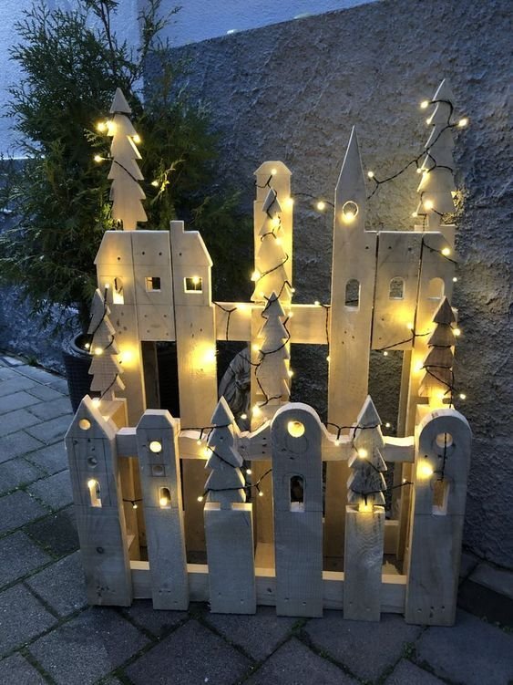Ако имам късмета да живея в къща ще си направя такава украса за двора от  палет.