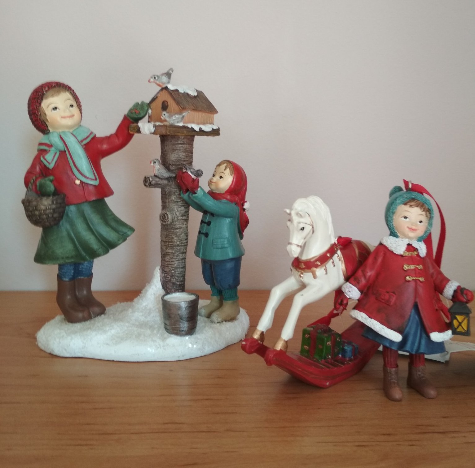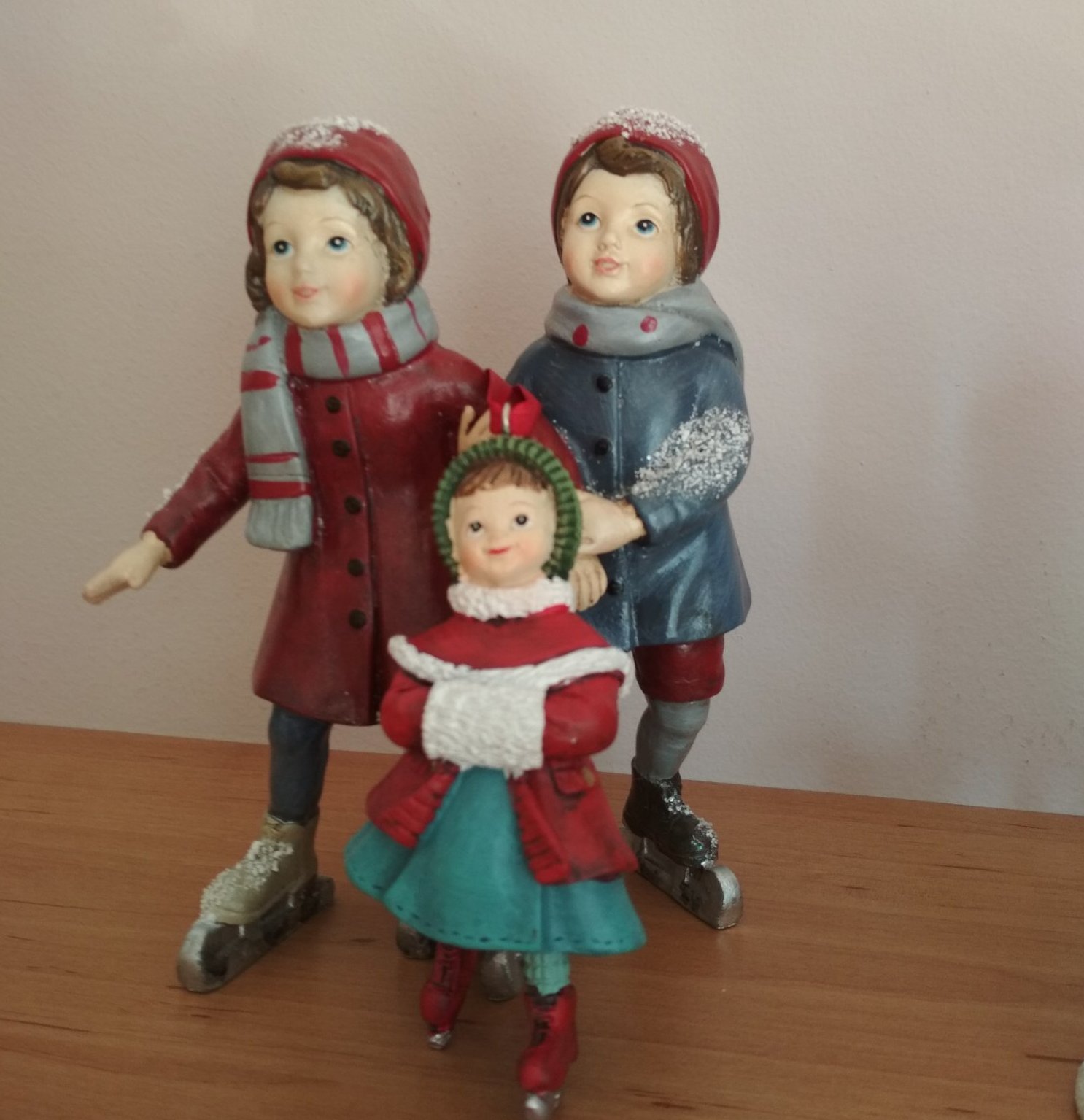 Двойката момченце и момиченце с кънки са от едно малко магазинче на ул. Шипка, срещу Докторската градинка, там винаги има хубави коледни неща, внасят от Германия мисля. Останалите неща са от Айко.