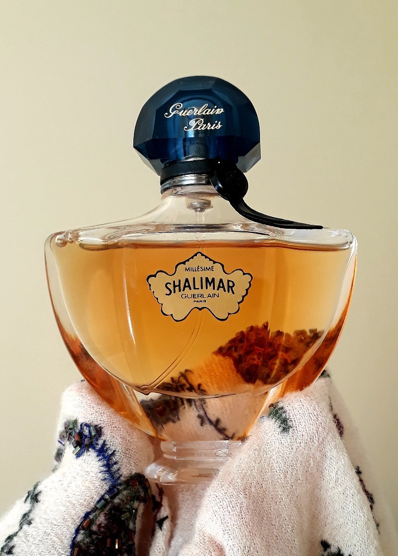 На моята кожа този нов фланкър не е силно ванилов, поне не в класическия смисъл/представа за ванилията като нота. Т.е. реално не усещам добавена сладост спрямо Cologne версията. Помирисан от пулверизатора, е едновременно по-сладък и по-тъмен, отколкото върху кожата ми. Четох/слушах, че Герлен са използвали своя собствена тинктура от мадагарска ванилия, произведена по някаква по-особена технология, за направата на парфюма. Това, което усещам като различно спрямо Cologne версията и което, предполагам, се дължи на добавката на "специалната ванилия" на марката, е една идея по-тъмният характер на композицията - някак по-смолист, леко опушен е драйдаунът спрямо Cologne версията, има и намек за кожа, съвсем лек. Също така, Millésime ми се струва някак по-сух, сериозен и зрял, не е толкова кремест, ярък и жизнерадостен, колкото усещам Cologne. Цитрусите са по-обрани също, но oстават един от основните компоненти. Класическата структура е запазена - цитруси, ванилия, пудрено-помадена подложка. Усеща се съвсем, съвсем лек намек за кожено-анималистичния компонент, който е характерен за Shalimar EDP - но това е при много сериозно вглеждане, на практика е толкова минимална дозата, че се излъчва по съвсем различен начин и не е водещ елемент. Kaто казах ЕДП - в торбичката имаше мостра от ЕДП, пръснах от любопитство - ами, според мен продължават с реформулациите, понеже ми се видя доста по-хрисим от този вариант, който аз познавам и който със сигурност е доста по-стар бач (имам все още количество от отливка). Трайност и излъчване на Millésime на моята кожа - не е толкова шлейфов и интензивен колкото Cologne, трайността е съпоставима с тази на Cologne - над 8 часа.