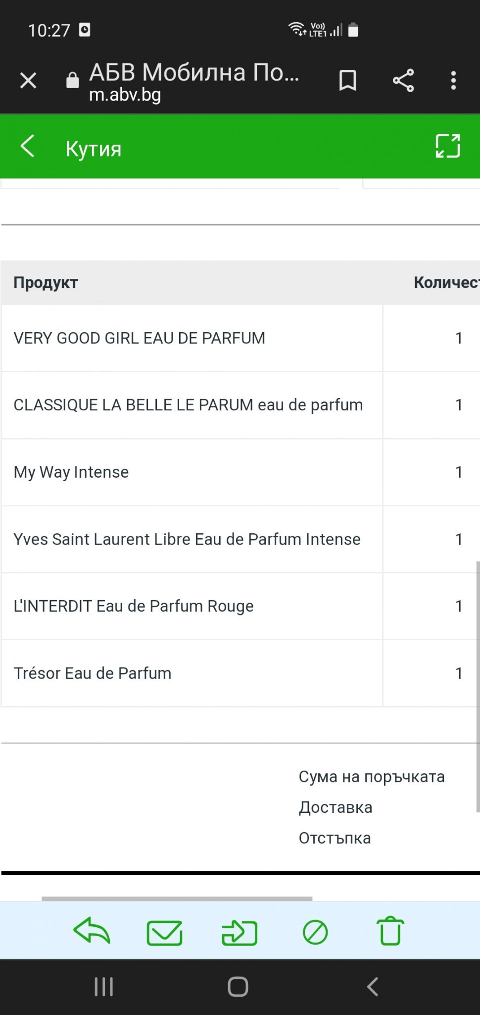 Aз също поръчах Rouge 35 мл., с получаване от магазина в гр. София. Казаха, че мога да си взема парфюма от магазина половин час след поръчката, което също си е бързо.