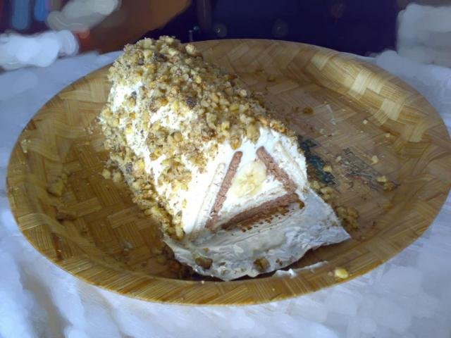 Рецептата за сирене Крема торта включва крема сирене или Филаделфия, меко масло, пудра захар, банани, какао и бисквити с белтъци. Кремът се приготвя чрез разбиване на сиренето, маслото и захарта. Сглобяването включва подреждане на бисквитките, потапяне в прясно мляко (по желание), намазване с крема, добавяне на банани и останалата част от крема, украсяване и охлаждане преди сервиране.