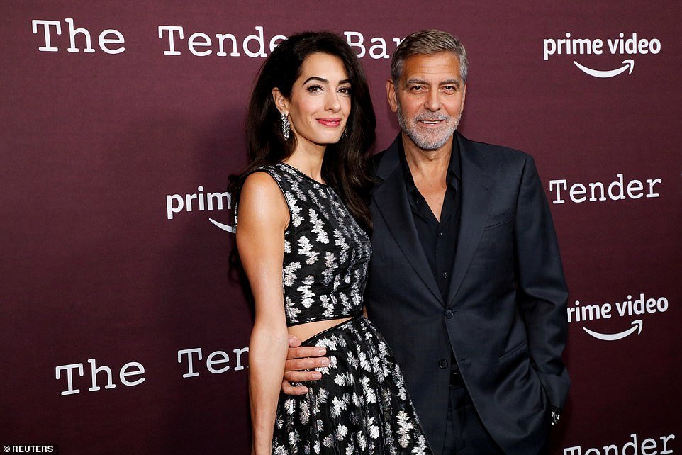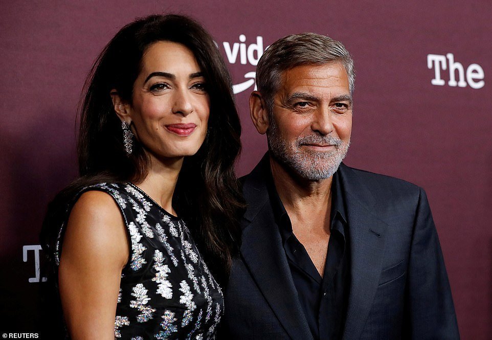 Джордж Клуни и Амал (струва ми се, че има корем, но може и от роклята да е).