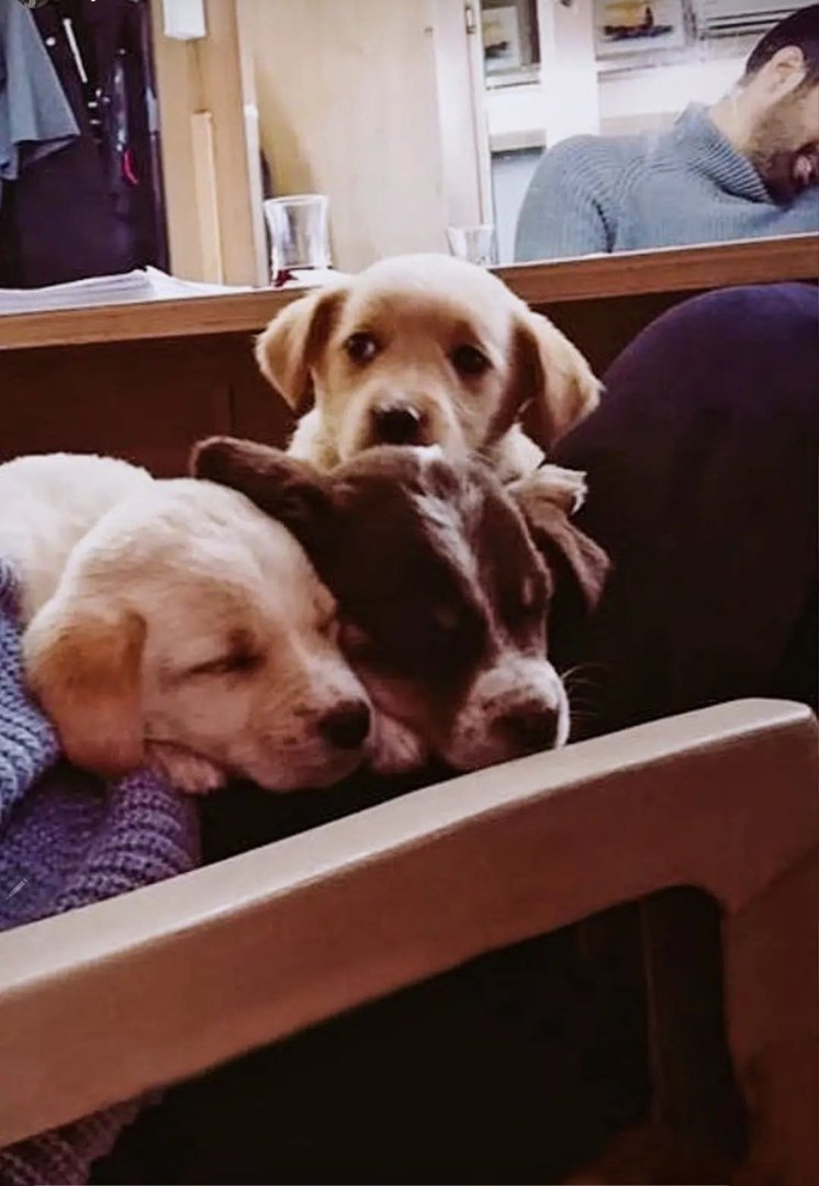 В огледалото се вижда как Енгин им се радва, двете вече се готвят да дремнат, а третото го гледа в очите...