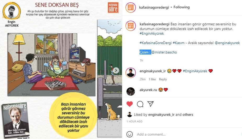 Енгин сложи в сторито си анонса от kafasinagoredergi: