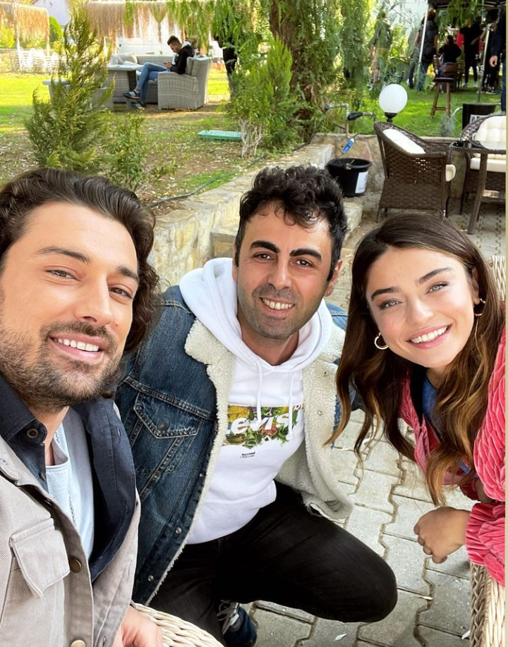 Последният пост на Алп Навруз от двойката, които непрекъснато се снимаха един друг от снимачната площадка на сериала и ги споделяха с последователите си в Instagram, разсмя феновете им. Актьорът взе фотоапарата и позира на половинката си. Той също така написа „Допълнителна работа“ под снимката, която сподели в Instagram.