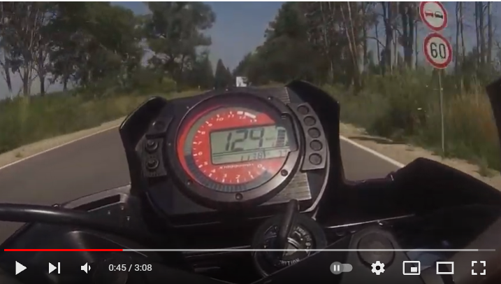 Абсолютен малоумник. Сега българската полиция да се самосезира, защото ясно се вижда, че при знак за ограничение на скоростта 60км, този тъпанар хвърчи с над 120. Ако не стана ясно-да, ненавиждам безотговорни шофьори, особено мотористи.