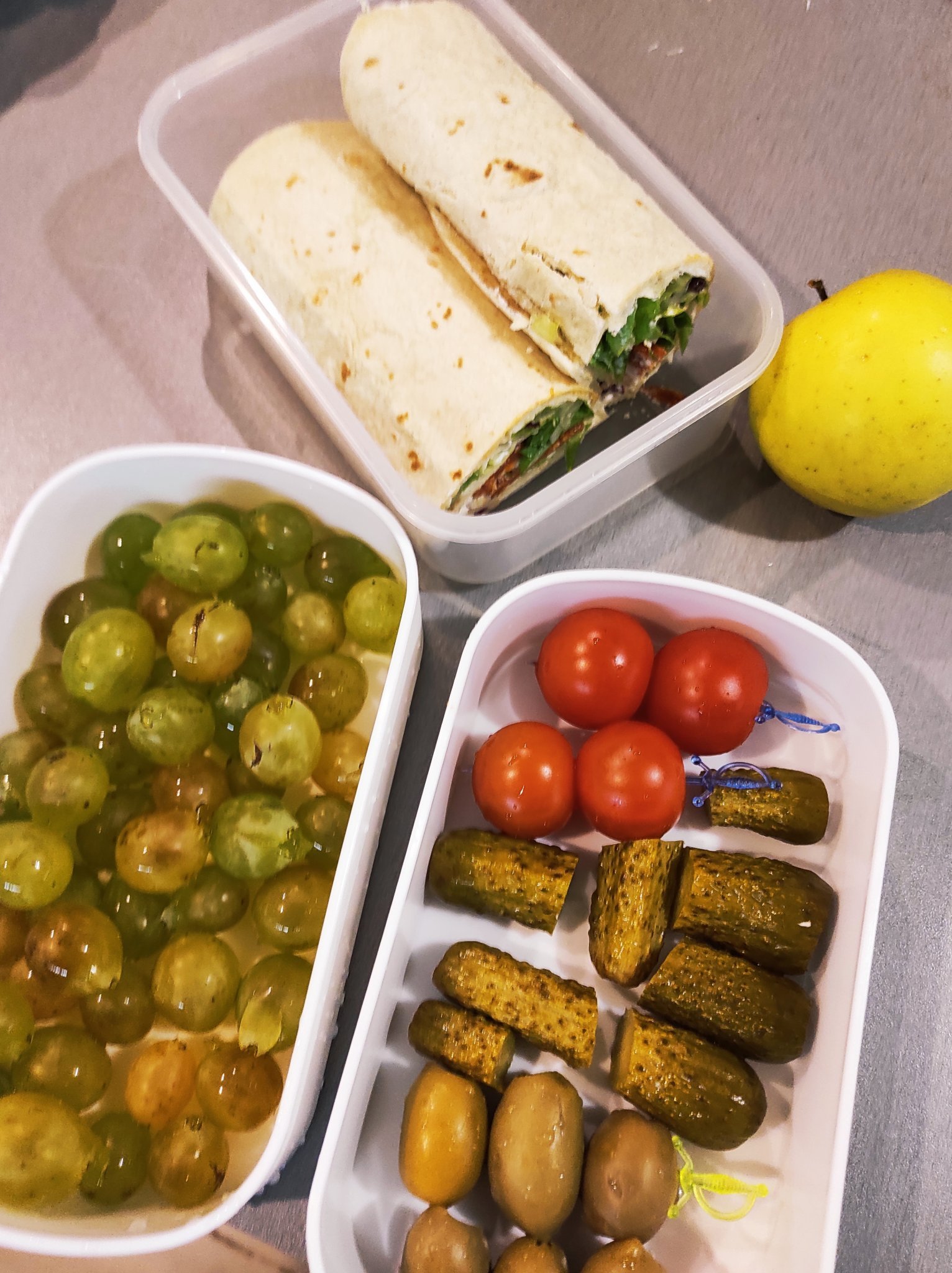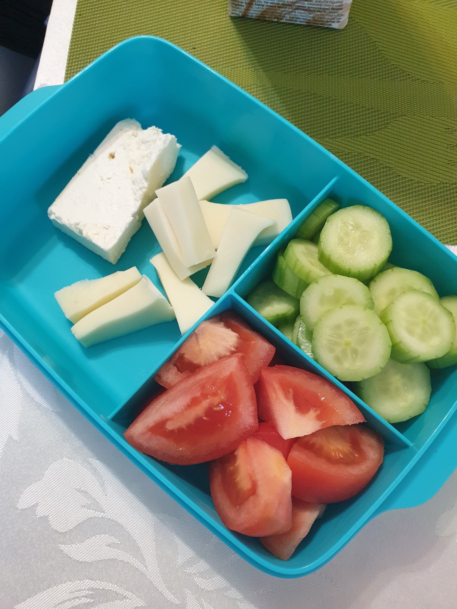 Здравословни и лесни за приготвяне ястия за деца включват сандвичи с пилешко, салата с фурми и моркови, грозде, шоколадови бисквитки, лозови сармички, кифлички с шоколад, бисквити , пица на парче или кремки със сирене и зеленчуци като краставица и домат. Други опции включват попара с препечен хляб и плодове или плодова салата.
