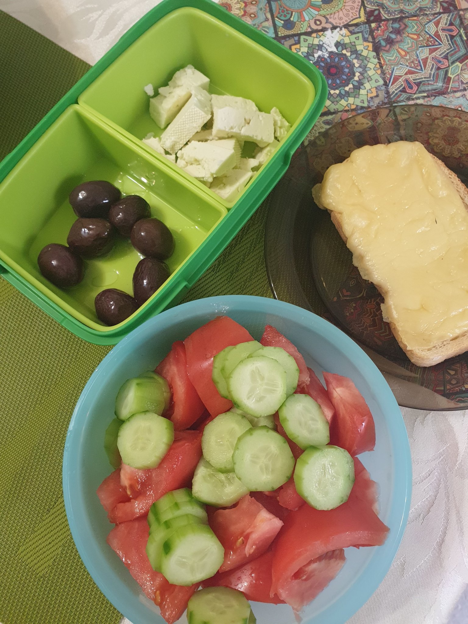Фермерско сирене, филия с ементал, маслини  салатка!