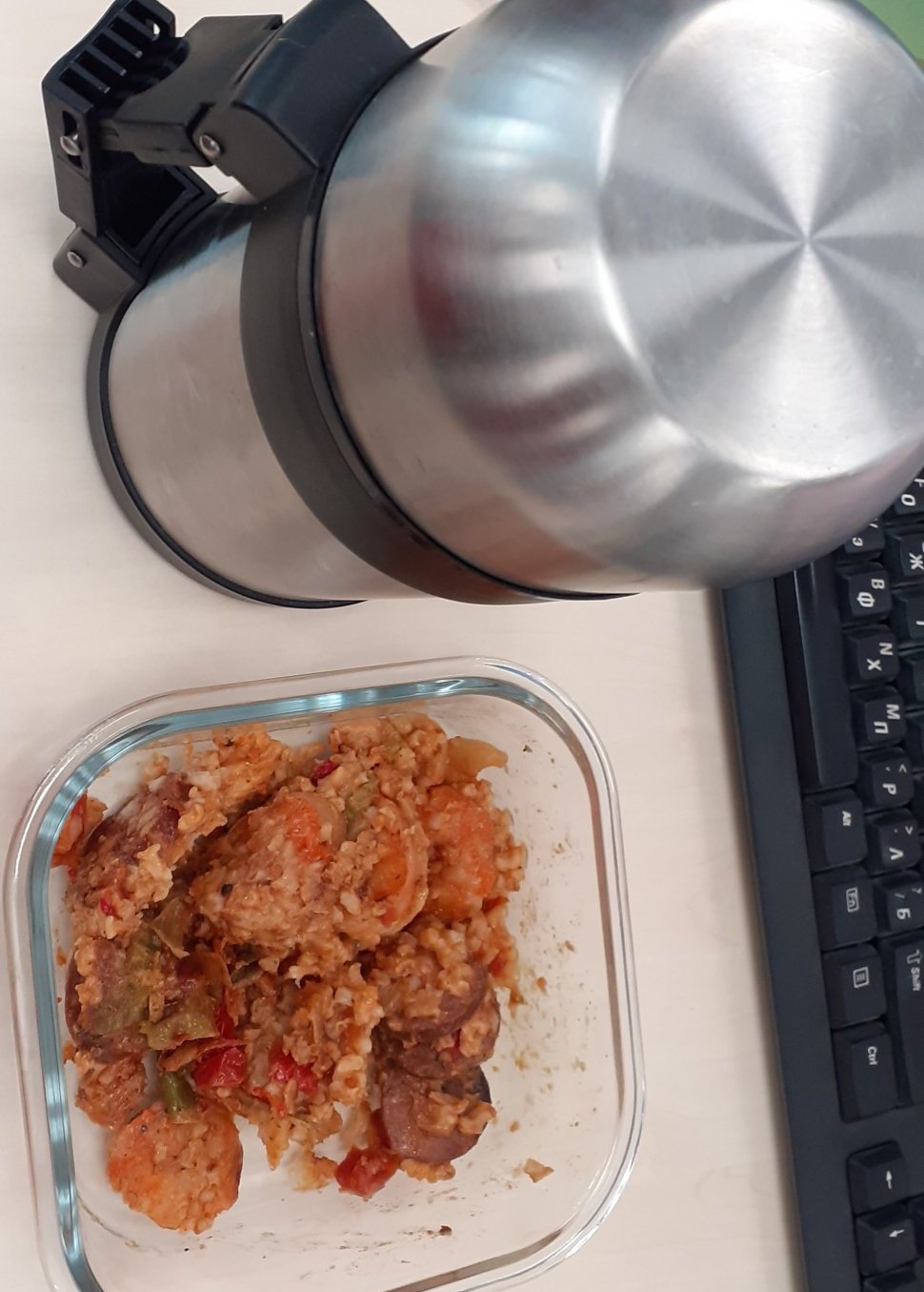За обяд джамбалая и биск с остатъците от скариди Yum